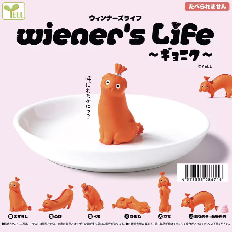 yell扭蛋這次以魚肉香腸為主角😹將香腸變身貓咪狗狗造型,貓咪伸懶腰、舔毛,狗狗翻肚睡覺、「解放」的造型都有,簡直腦洞大開!模樣太逗了吧 . Size: 4-5cm